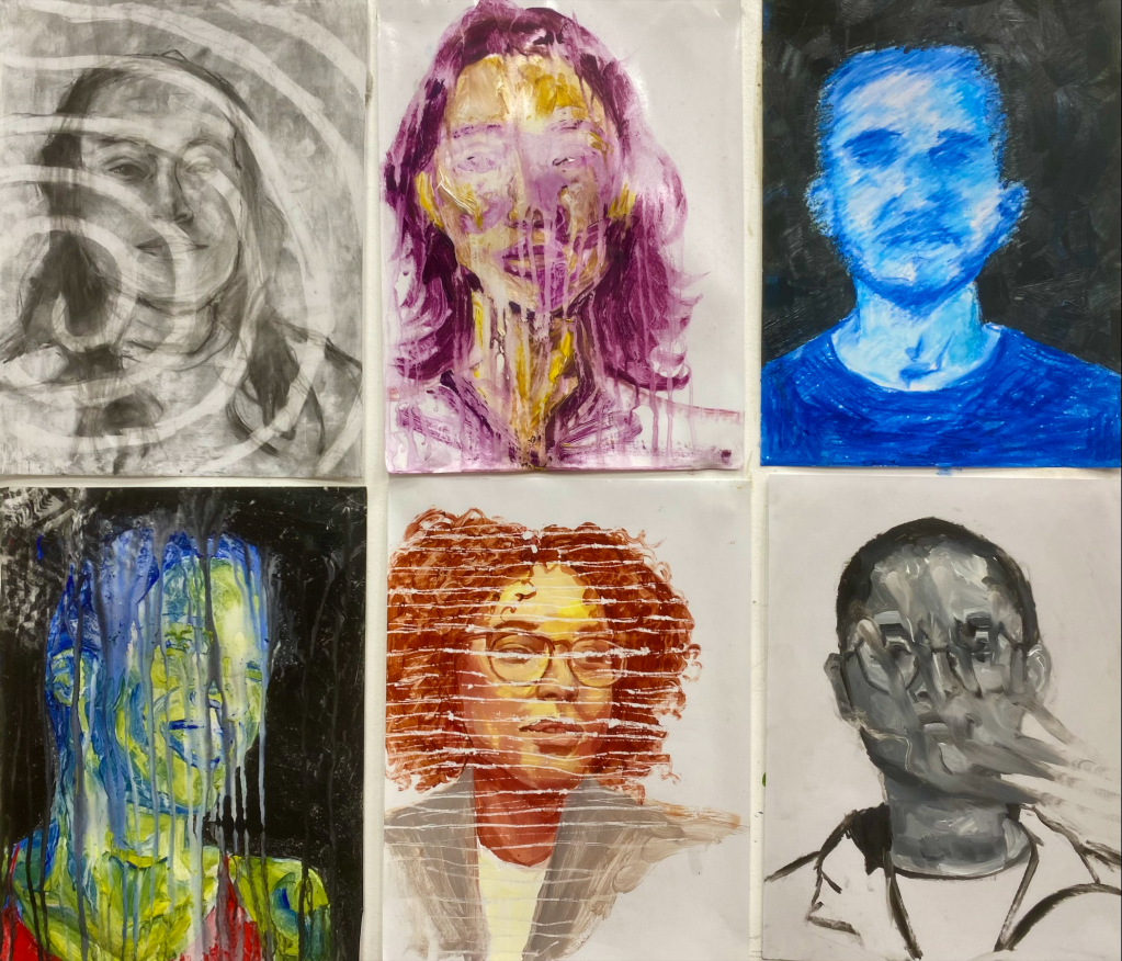 Overkill is my attempt to visualize Eric A. Stanley's ontological and structural claims in their book The Atmospheres of Violence: Structuring Antagonism and the Trans/Queer Ungovernable. They explore how anti-trans violence comes to be and operates within society, with one manifestation of this "atmosphere of violence" being "overkill." Overkill is "such excessive violence it pushes a body beyond death"; in other words, it is not only the intentional murder of transgender people, but the attempt to erase all traces of transness altogether. I began the process by tenderly and lovingly creating portraits of transgender people on palette paper using a variety of mediums: acrylic paint, water-based oil paint, charcoal, and gel sticks. I ensured that I was diverse in my subjects and that none of them looked "stereotypically trans," as there is no "look" that indicates transness. I then began the process of not only "killing" them, but disfiguring them beyond recognition. This included literal erasure with an eraser, wetting paints with a spray bottle, scraping them with a palette knife, stepping on them, and using my own fingers to smear their face in an intimate act of murder. It was painful not only because I put a lot of time and effort into making them look well-rendered, but because I consciously knew what this destruction paralleled in real life. The disturbing nature of this series is what makes it accurate to my own and other transgender people's experiences.